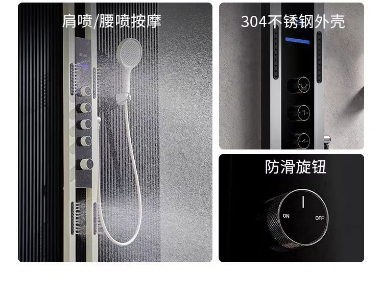 跨境外贸新款环形大瀑布天穹淋浴花洒套装全铜恒温增压数显淋浴屏