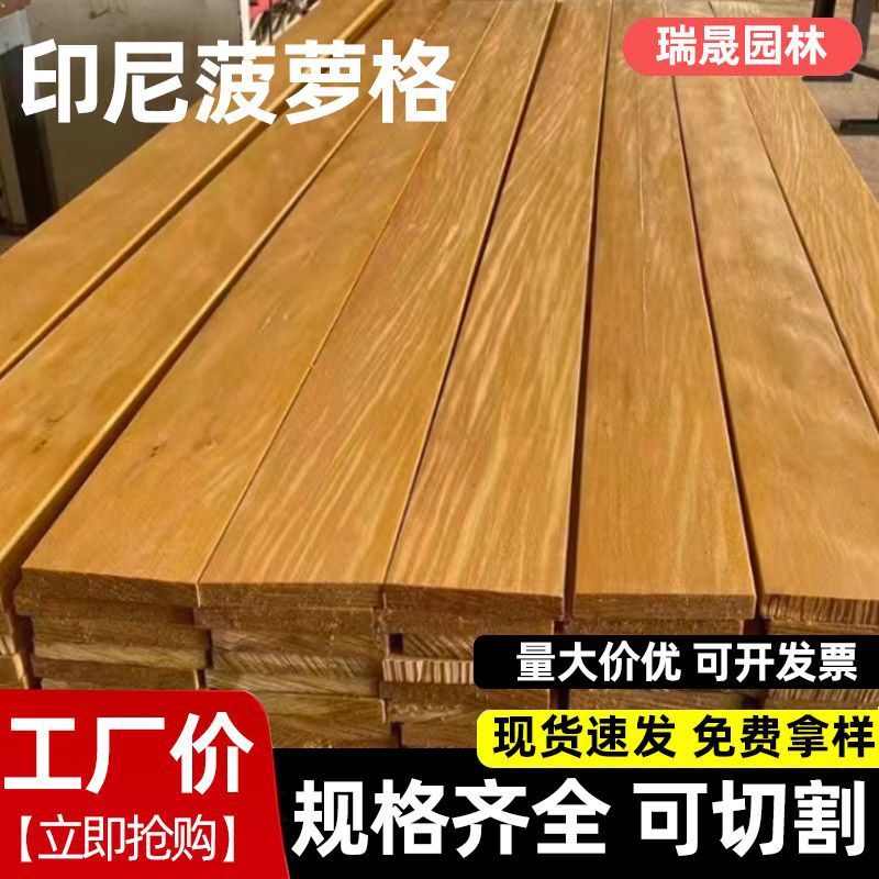 印尼菠萝格防腐木地板圆柱原木木方古长廊立柱户外实木建筑门头