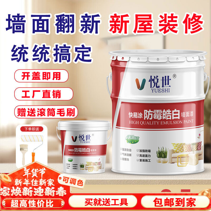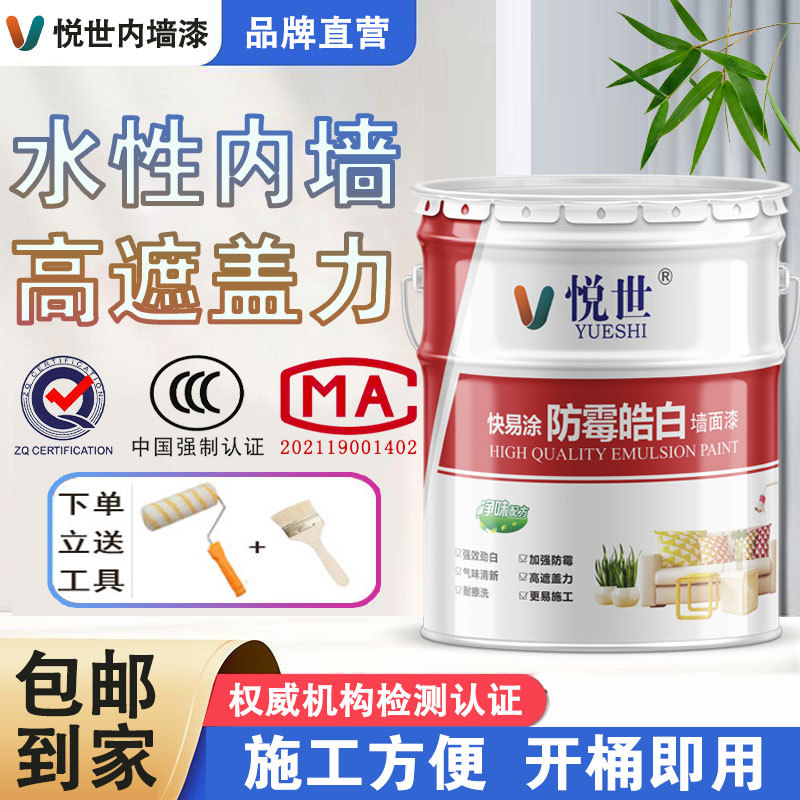 乳胶漆室内家用内墙漆清新超白净味防霉墙面漆20kg白色水性涂料