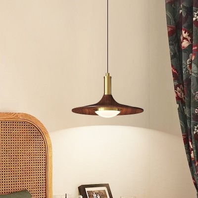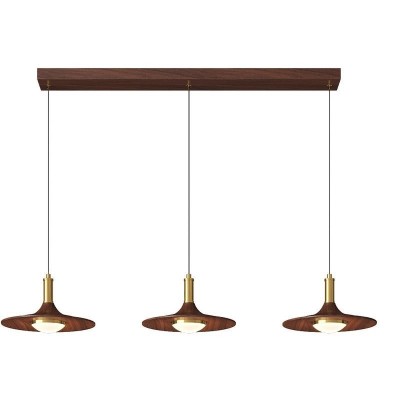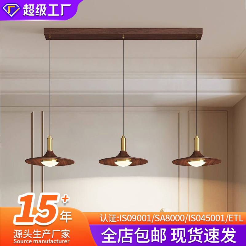 2025新款中古风餐厅吊灯飞碟三头咖啡茶室吊灯胡桃木色卧室床头灯
