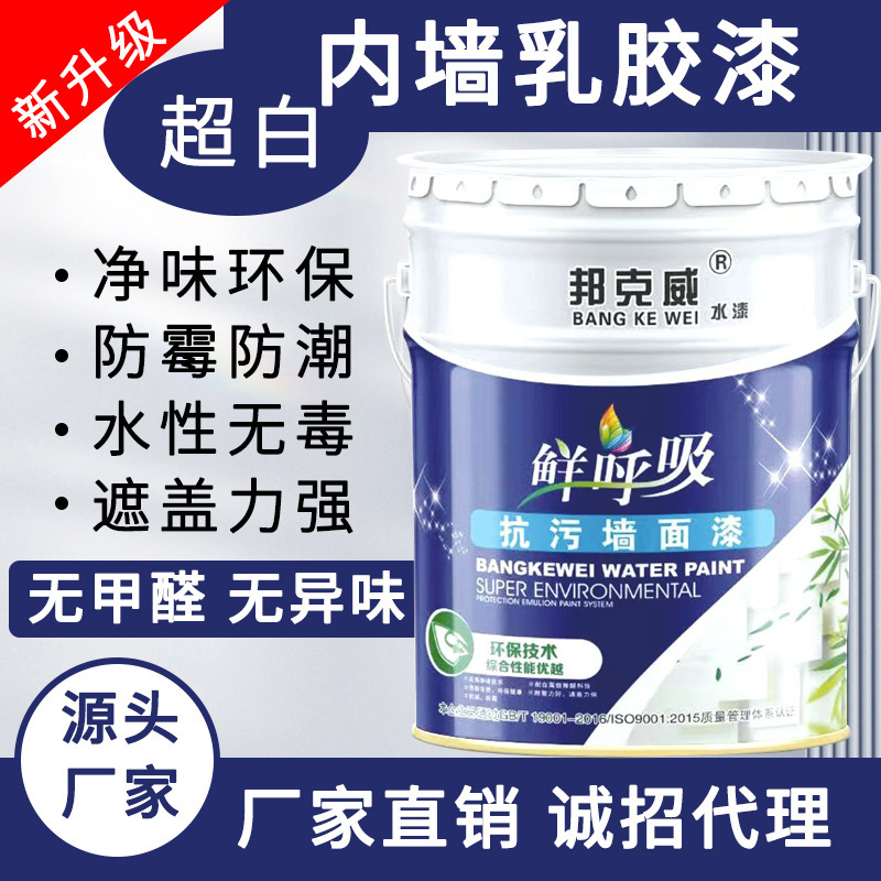 乳胶漆室内家用内墙漆清新超白净味防霉墙面漆白色水性涂料