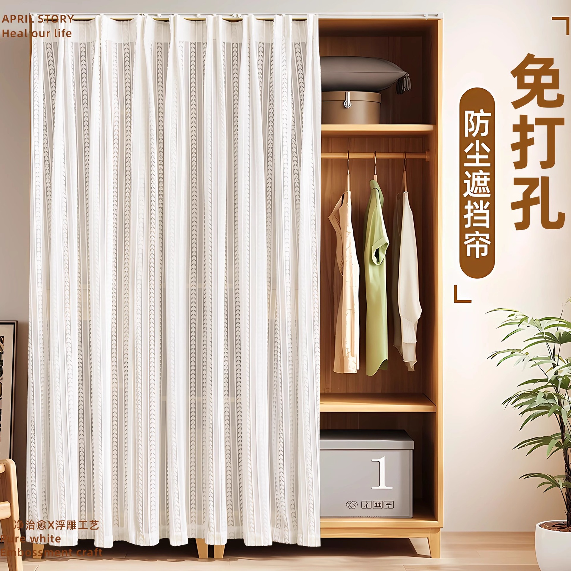 柜子免打孔遮挡帘开放式门帘鞋柜书柜橱柜置物架魔术贴防尘帘纱帘