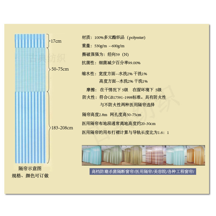 经编医用帘美容院遮光养老院隔离帘格子阻然抗菌成品隔帘窗帘批发