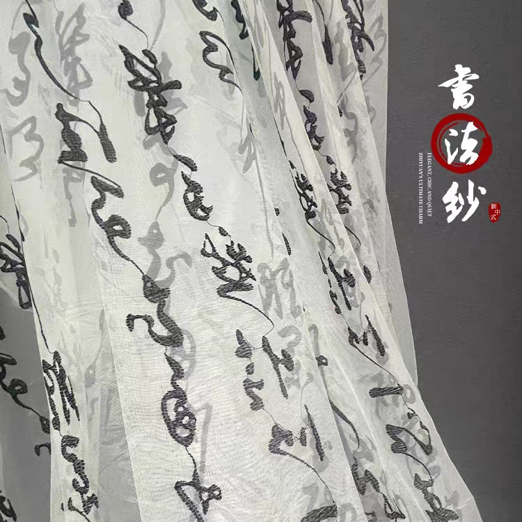 成品定制中式古典文字刺绣背景窗纱书法纱虞美人网红书房装饰纱帘