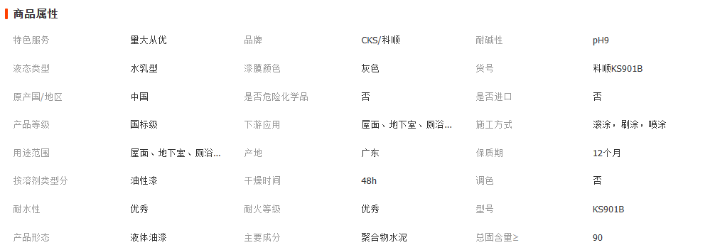 科顺KS901B聚合物水泥防水涂料屋顶地面室内外墙面体抗渗漏抗裂