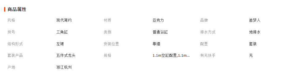 亚克力浴缸家用浴缸小户型浴缸三角形浴缸扇形浴缸1.0米-1.5米