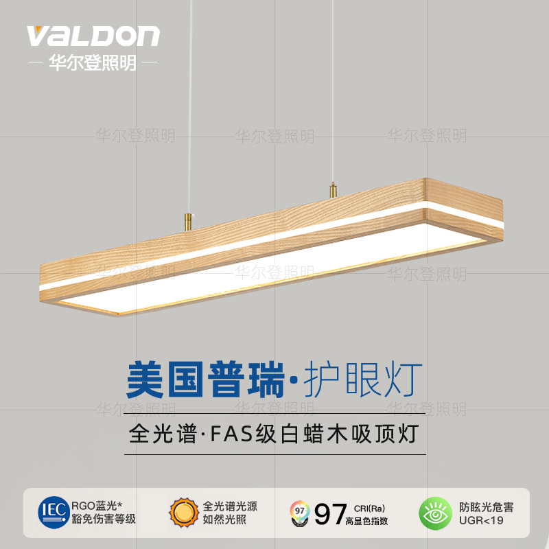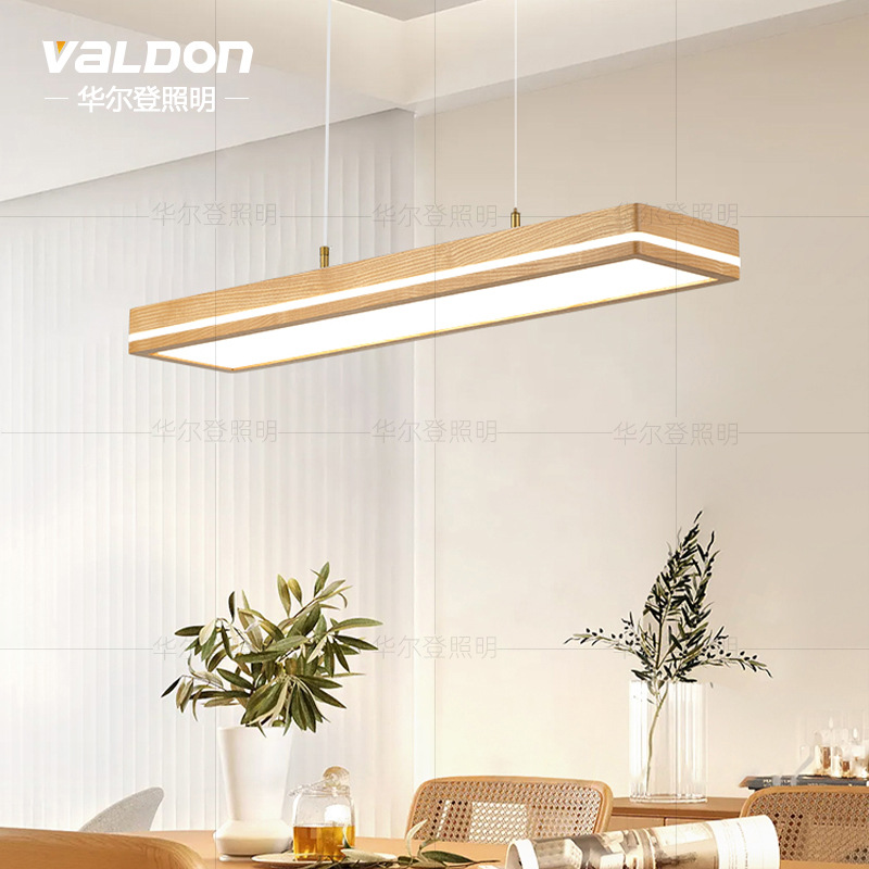 原木风餐厅吊灯白蜡木一字长条全光谱简约护眼书房茶房办公室吊灯