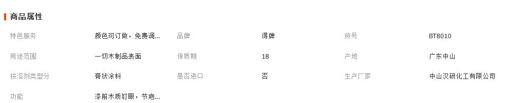 主营产品或服务: 水性修补腻子; 家具腻子; 木器补土膏; 木工油灰腻子; 水性木器腻子; 填孔宝; 钉眼腻子; 木色水灰; 水性木器漆; 家具裂纹漆; 乳胶漆等