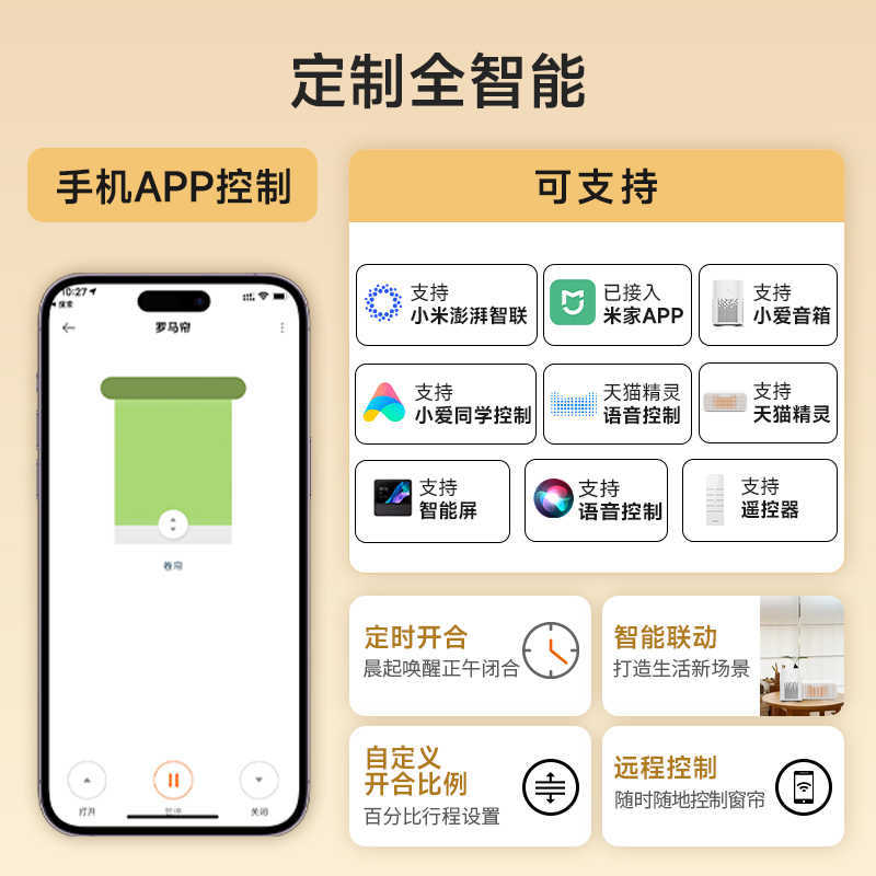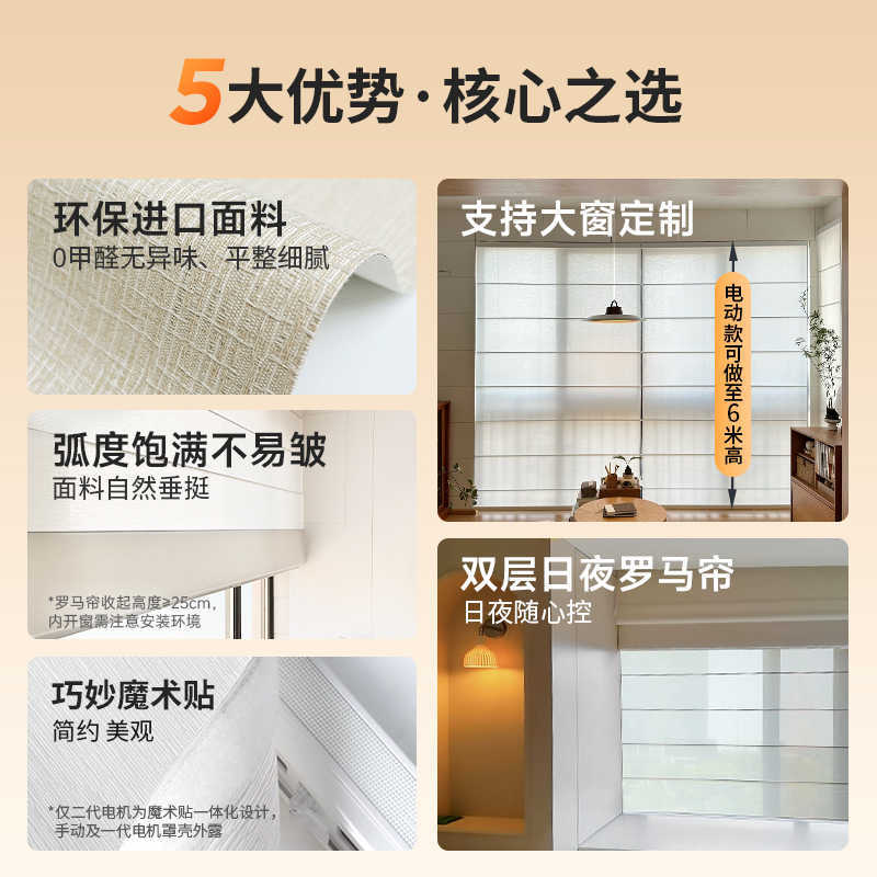 罗马帘定制客厅卧室智能折叠卷帘日夜双层全遮光遮阳亚麻纱遮阳帘