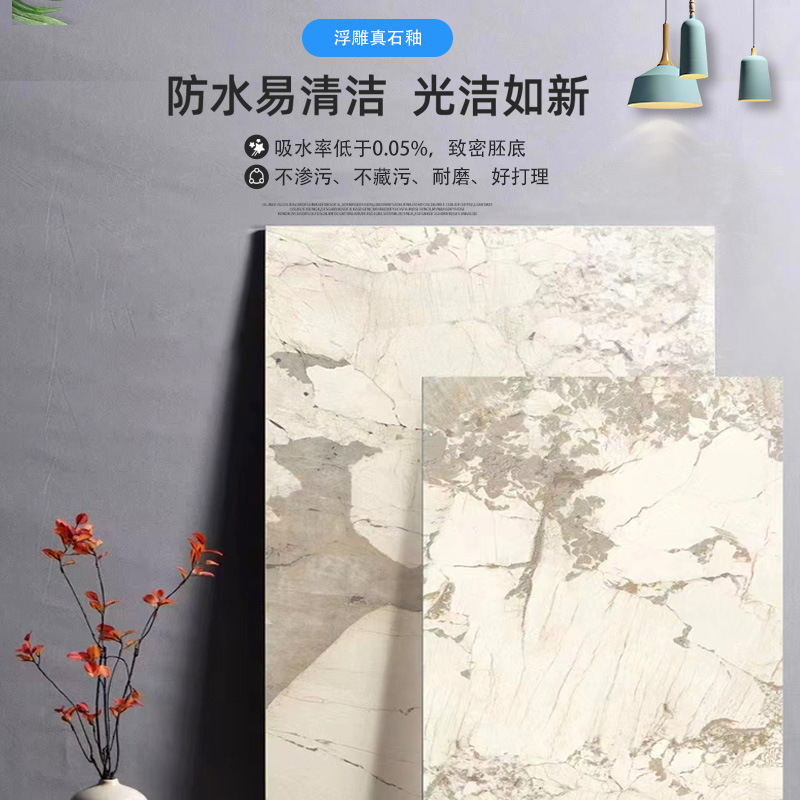 天然石材质感柔光砖大理石纹瓷砖精雕别墅大堂客厅地砖厨卫墙地砖