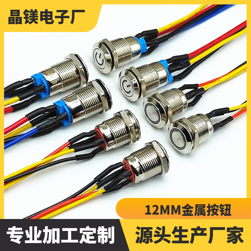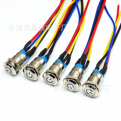 12MM带线金属按钮开关 防水带灯启动电源按钮 自锁自复位点动开关