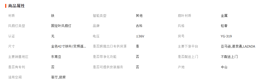 家用大风轻奢风扇灯金色欧式餐厅客厅电风扇铁叶变频一体式吊扇灯