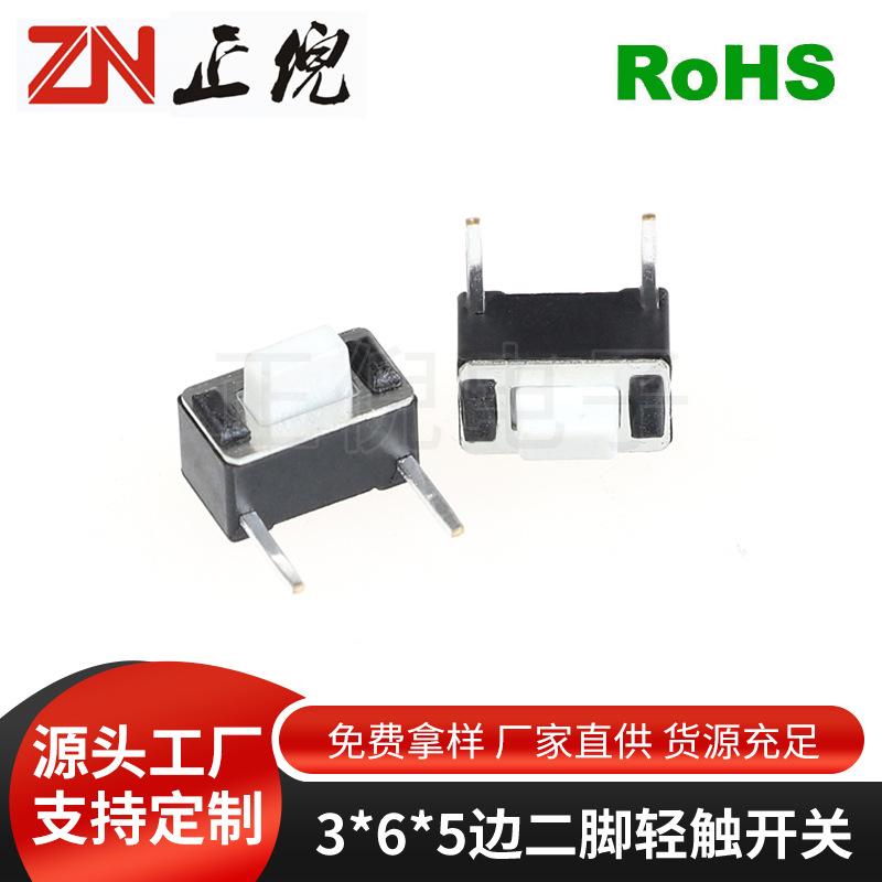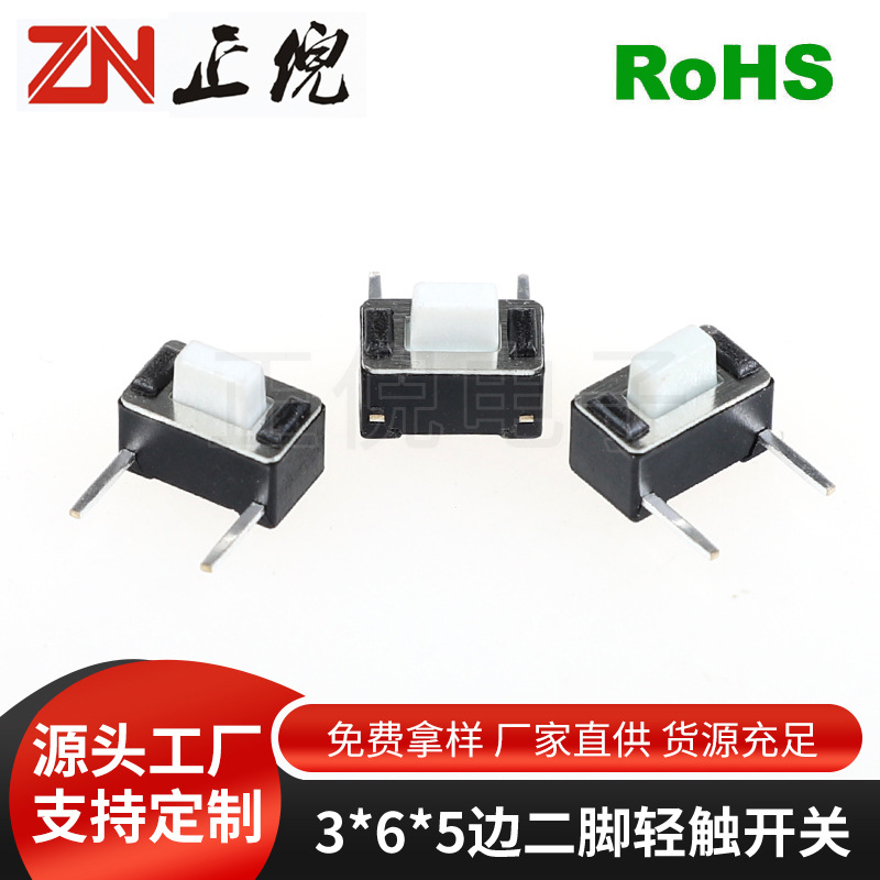 轻触开关3*6*4.3H边二脚侧插卧式白头侧按开关微动按键开关3*6*5