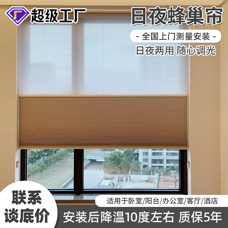 卧室阳台日夜两用蜂巢帘手动电动升降智能百褶蜂巢风琴帘生产厂家