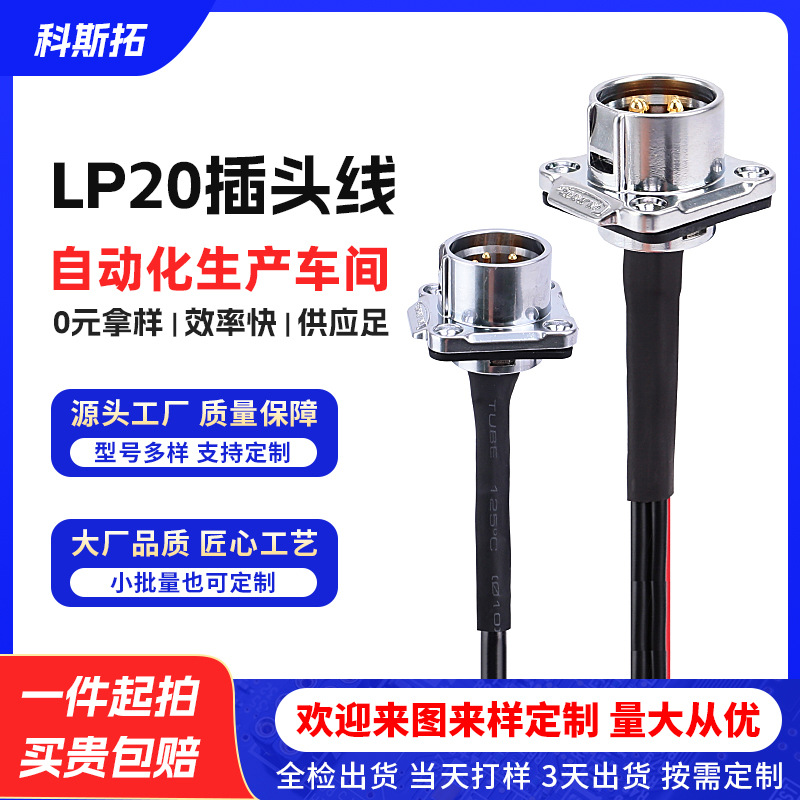 科斯拓航空插头线LP20多插脚 户外防水光伏连接器铜管地环定制