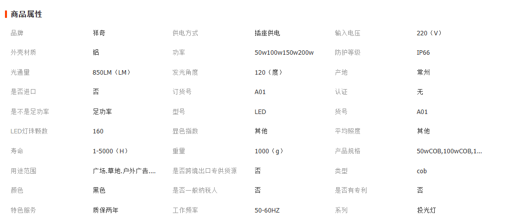LED投光灯户外防水投射灯200瓦大功率COB探照灯5054黑金刚投光灯