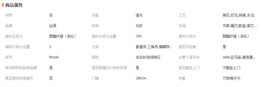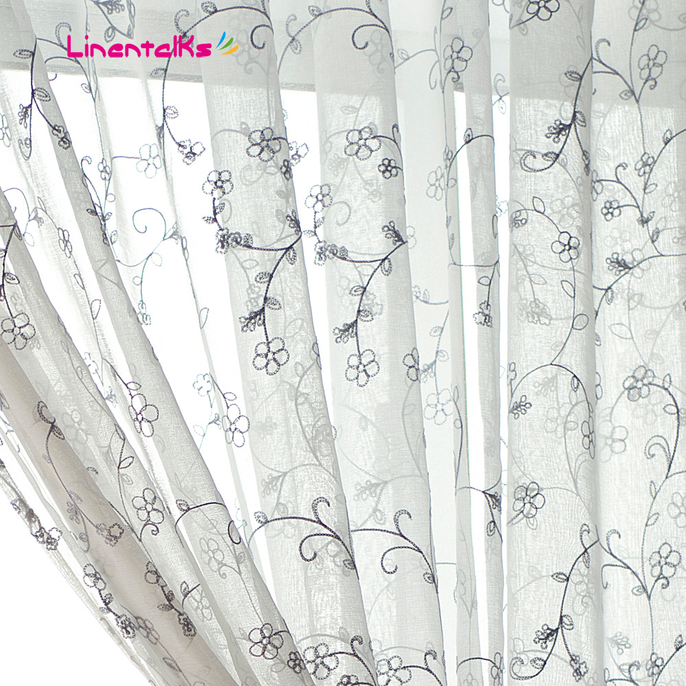 北欧ins风厂家直销欧式高档简约本白色麻纱绣花窗纱布艺纱帘窗帘