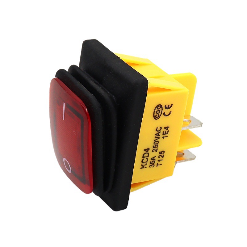 防水船型开关KCD4四脚二档电源点火电焊机清洗机翘板带灯35A 250V