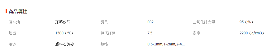 本公司石英砂滤料产品有两个标准,建设部标准:CJ/T431999(SiO2≥98%),电力部标准:DLJ58-81(经化学处理过SiO2≥99%)。石英砂滤料的特点:无杂质、机械强度高、化学性能稳定、截污能力大、使用周期长,经济效益佳用途:适用于单层、双层快速滤池和工业高纯度滤水的承托层。