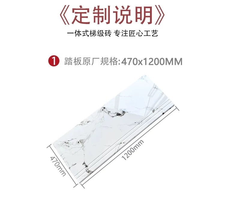 新款弧边一体釉楼梯踏步砖470X1200原槽台阶砖别墅踏步砖