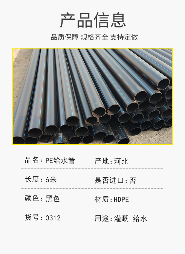pe管材给水管PE灌溉水管黑色pe供水盘管110 160 200 315耐腐蚀