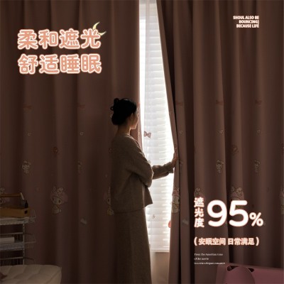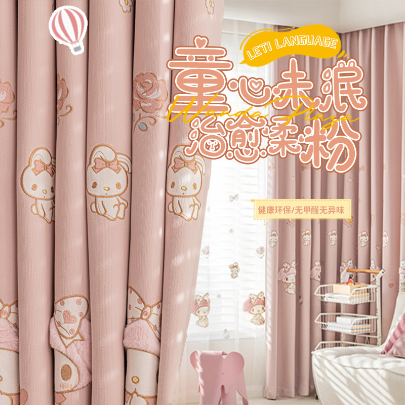 卧室儿童窗帘雪尼尔高遮光立体绣花客厅阳台柯桥窗帘布接全屋定制