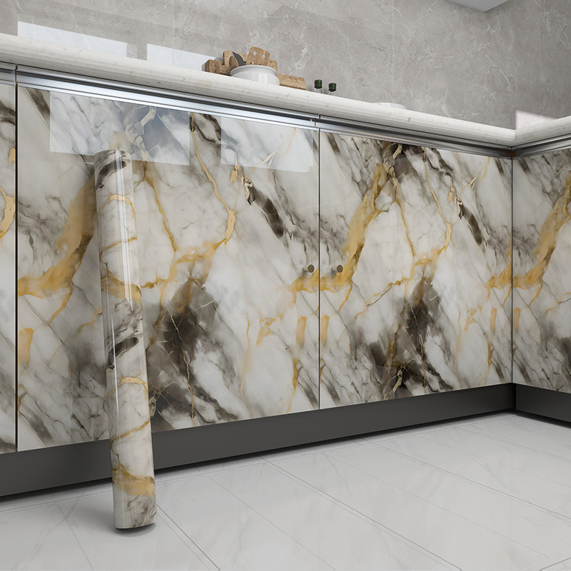 橱柜贴纸衣柜柜门家具翻新防水防潮自粘厨房大理石改色瓷砖贴膜