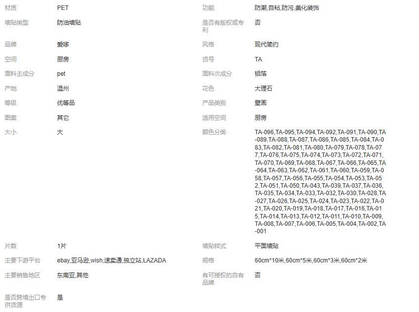 厨房贴纸防油烟防水台面防油污大理石墙面装饰定做定制厨房装饰