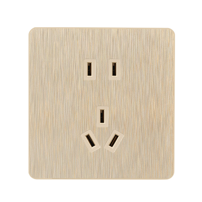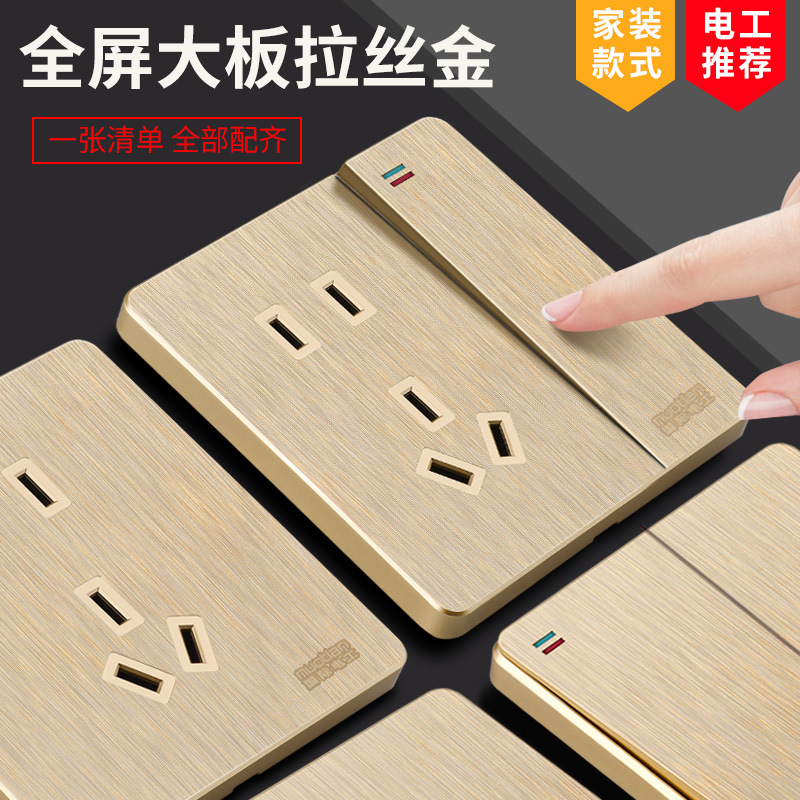 国际电工五孔插座面板拉丝金家用开关插座86型10A二三级墙壁插座