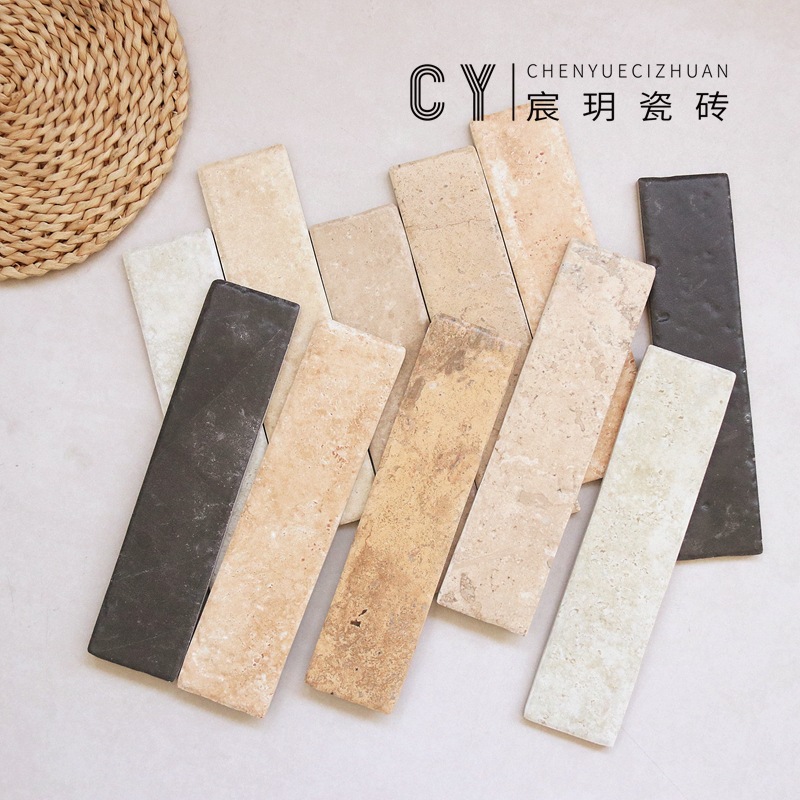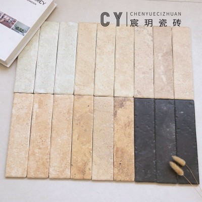 长条洞石瓷砖米黄色莱姆石仿石材手工砖陶土砖餐饮卫生间民宿墙砖