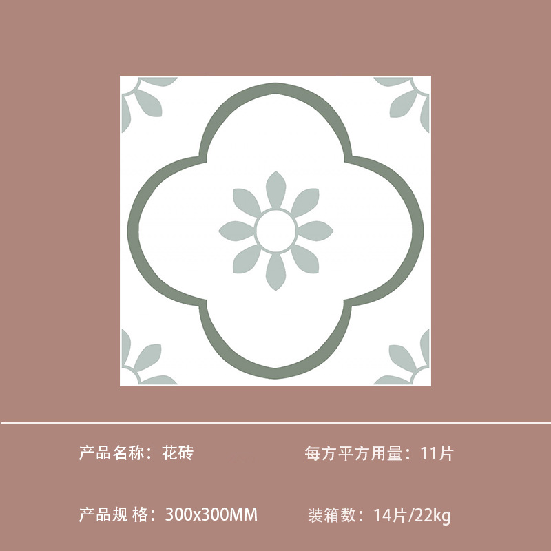 法式复古小花砖300x300 厨房卫生间瓷砖花园阳台浴室防滑地砖墙砖