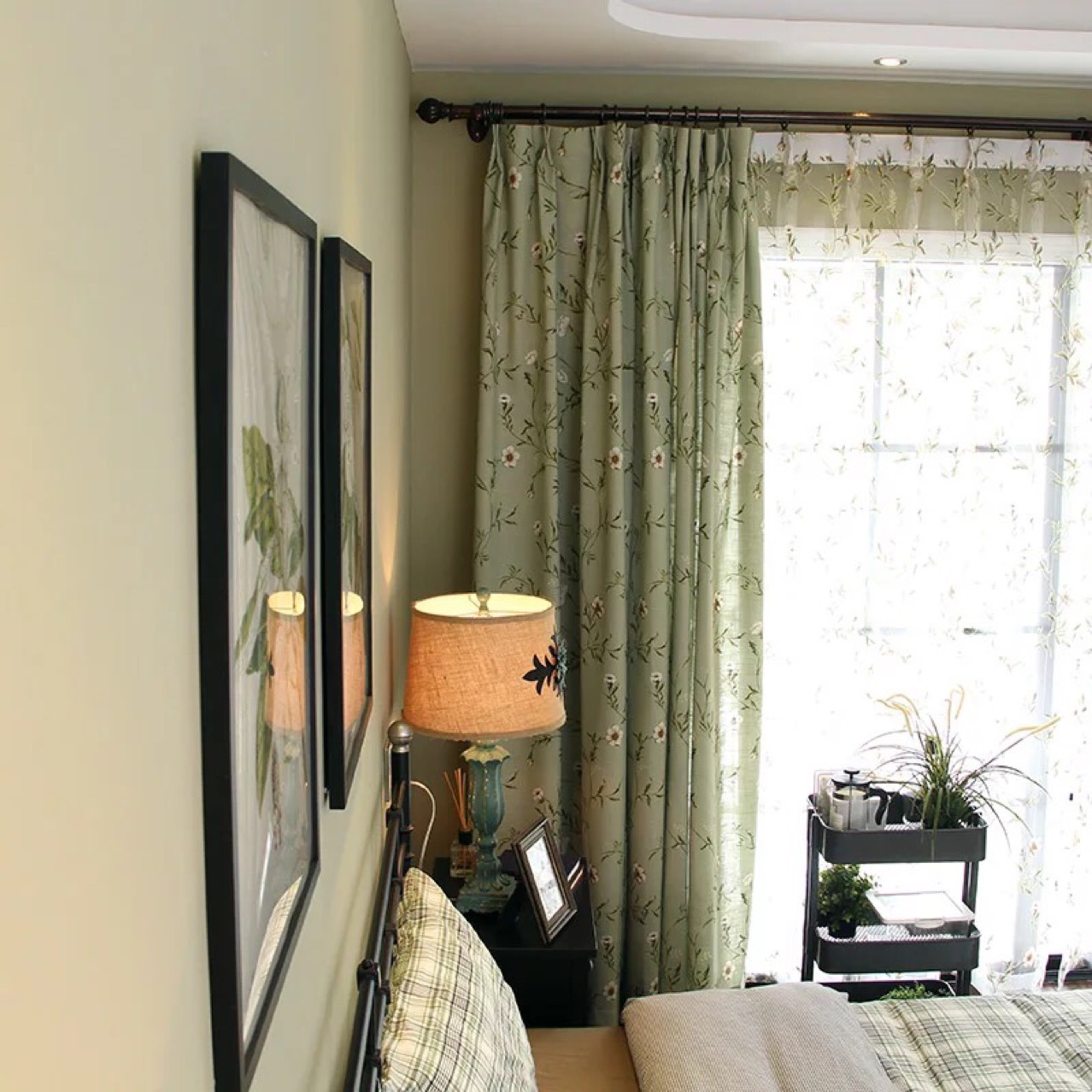 美式田园乡村风格棉麻印花半遮光卧室客厅成品窗帘布料窗纱