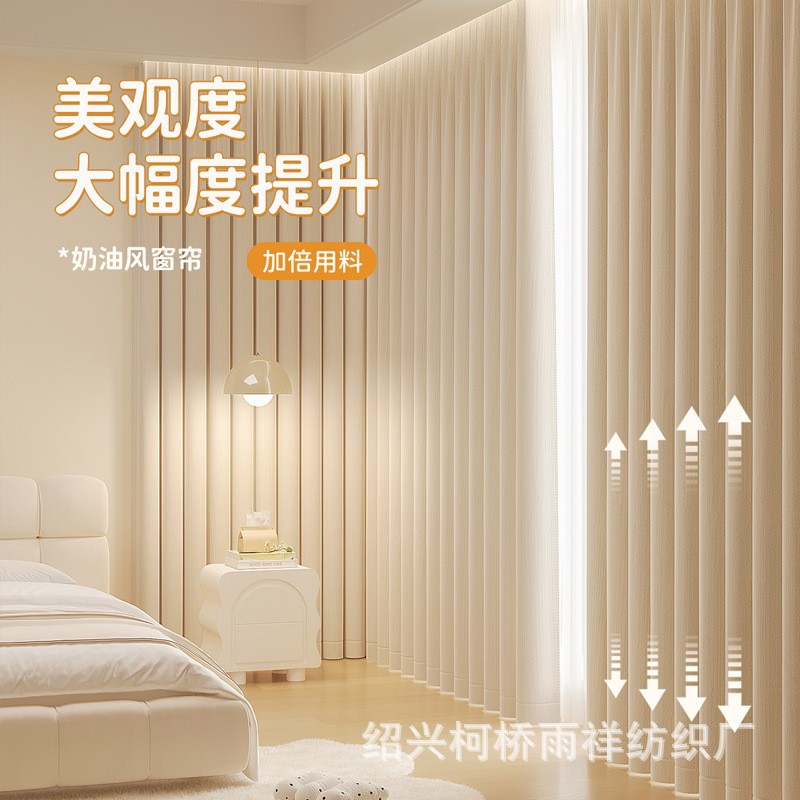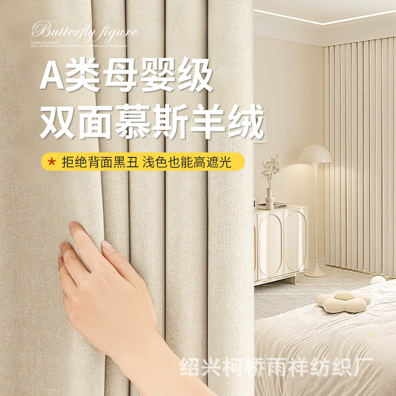 慕斯羊绒奶油风双面高遮光窗帘布防晒加厚成品加工客厅卧室阳台
