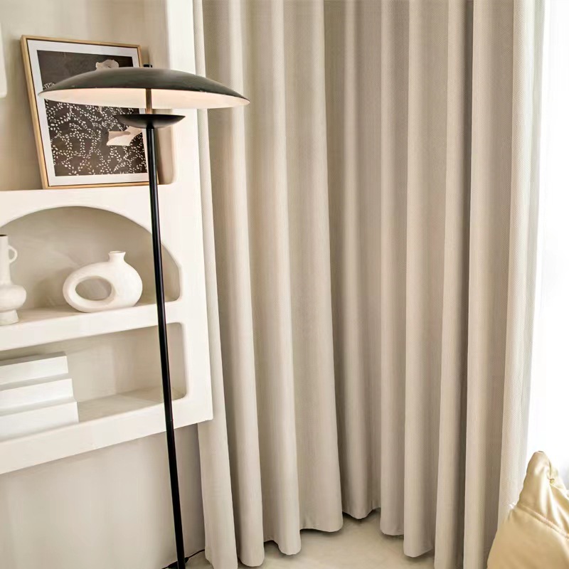 小红书推荐爆款雪尼尔人字纹日式窗帘法式奶油色卧室遮光客厅遮阳