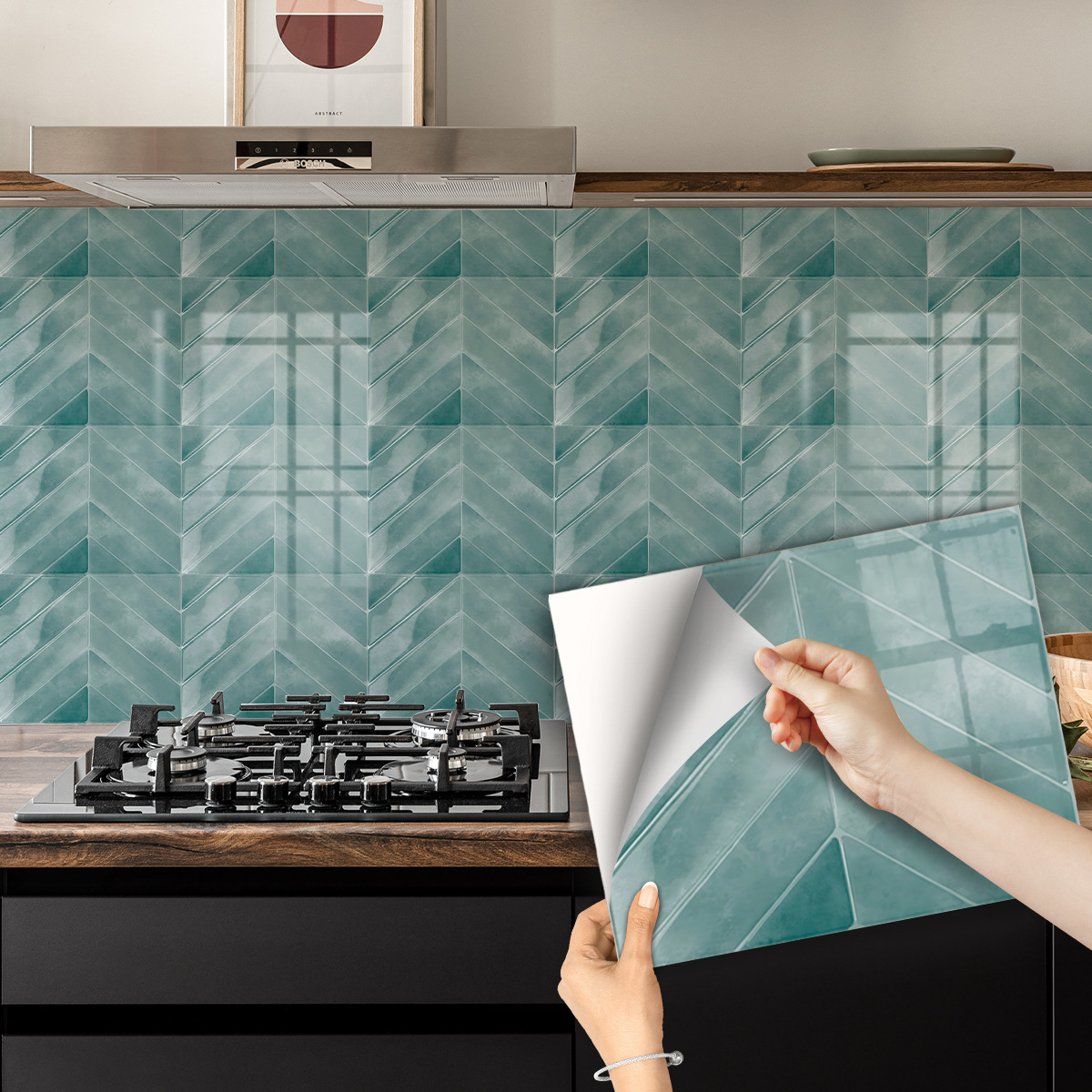 跨境爆款厨房墙面贴纸自粘厨房装饰瓷砖贴墙贴防水防油工厂直批