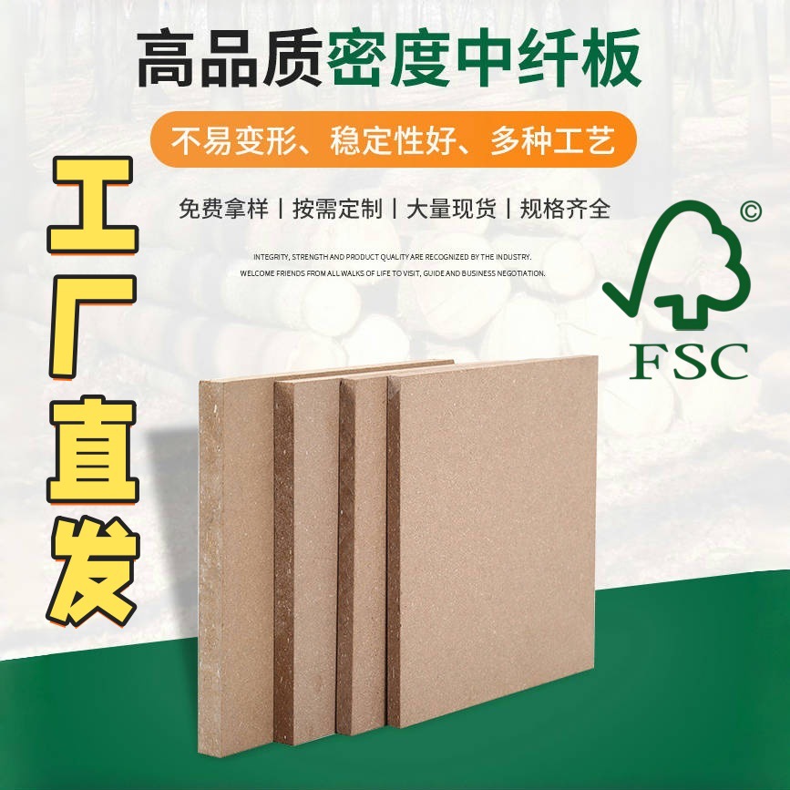 密度板中纤板整板木板材免漆板FSC认证桌板家具板高密度板