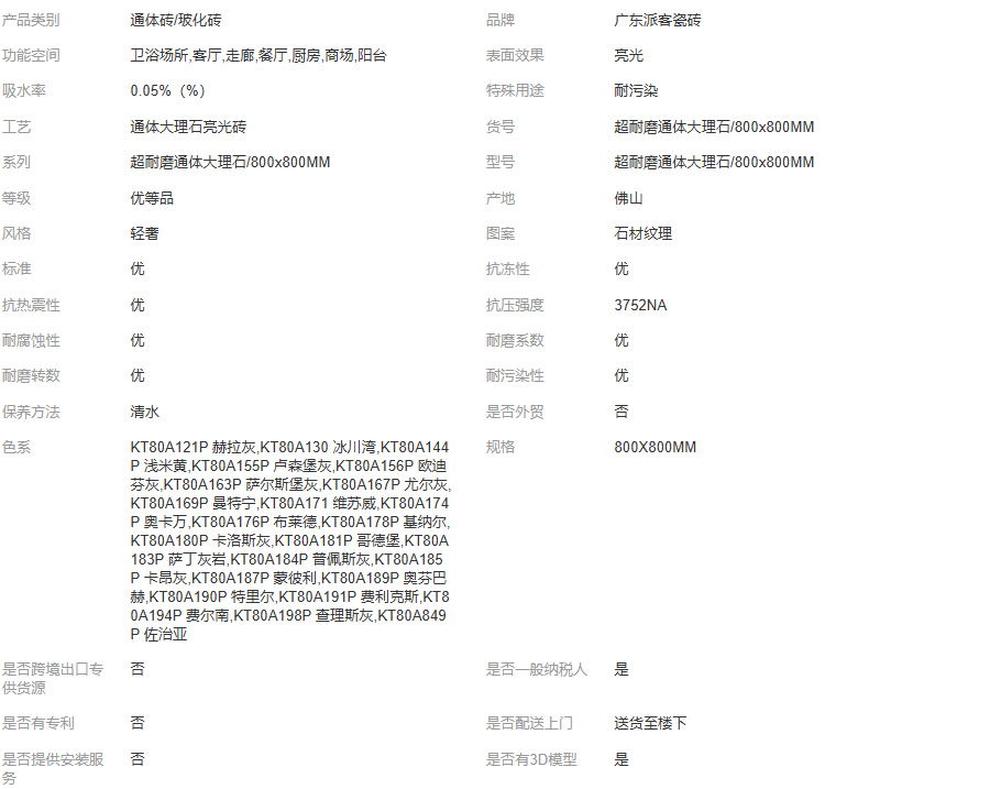定制加工通体大理石瓷砖800x800客厅卧室阳台厨房卫生间防滑地砖