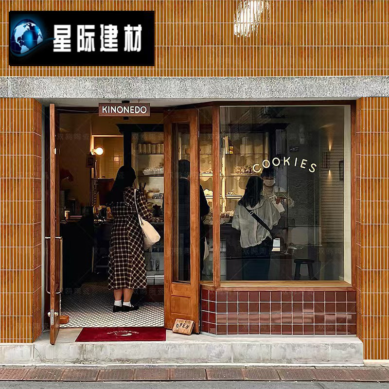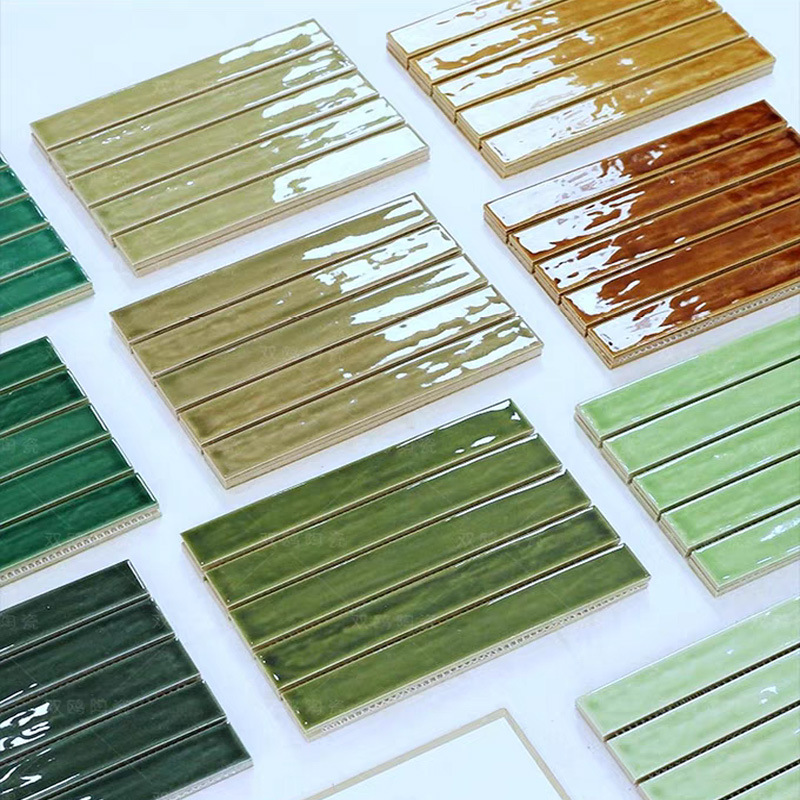 28*214波浪纹窑变长条马赛克瓷砖中古风厨房餐厅商业空间墙砖