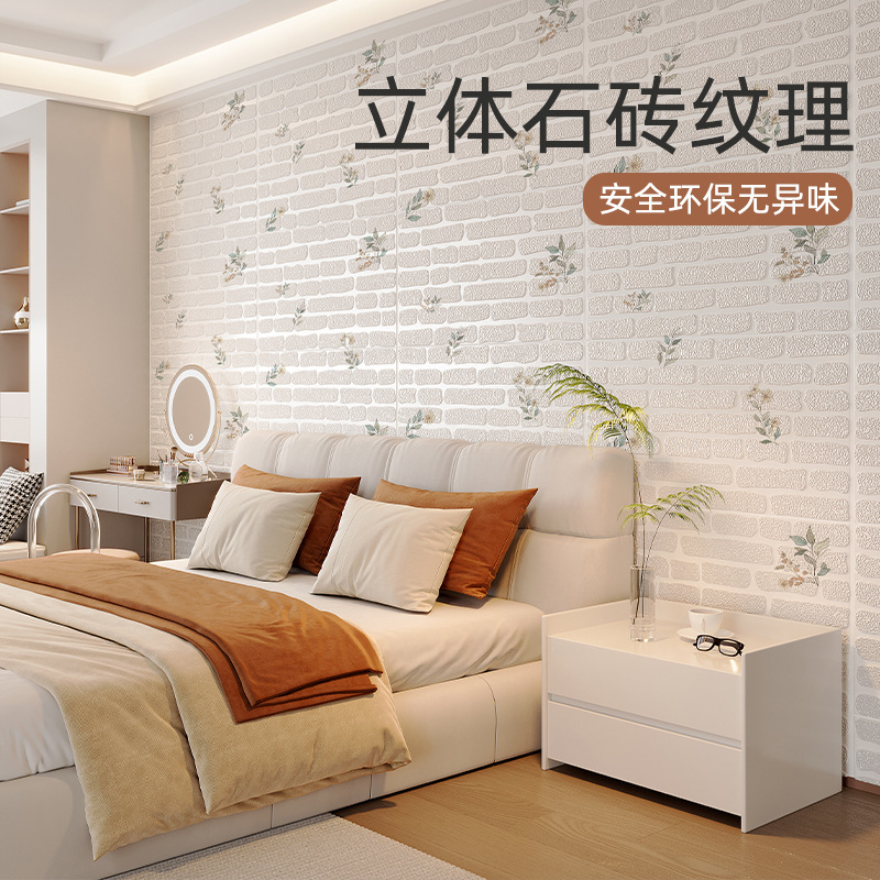 3d立体墙贴泡沫砖墙纸自粘防水防潮壁纸儿童卧室装饰温馨背景墙面