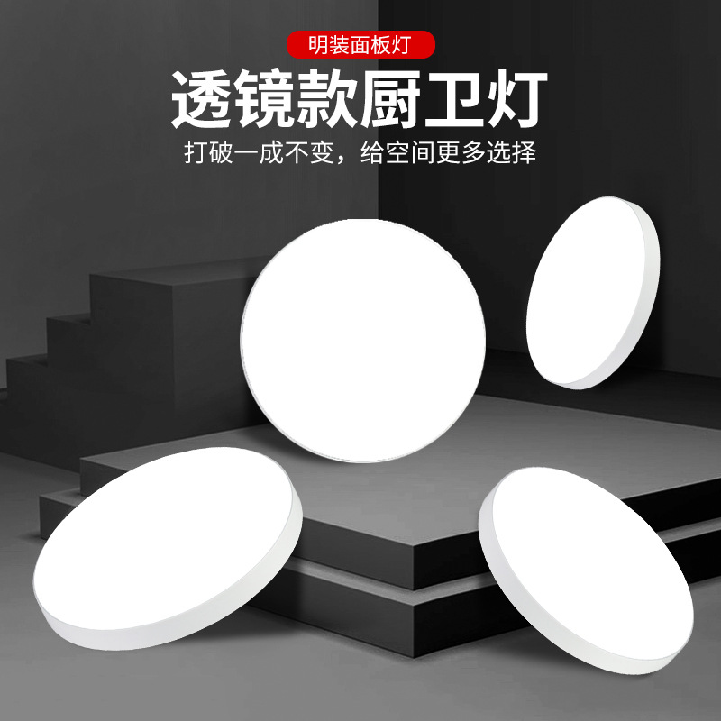 led透镜款厨卫灯明装圆形 厨房卫生间过道面板灯平板灯厨房灯批发