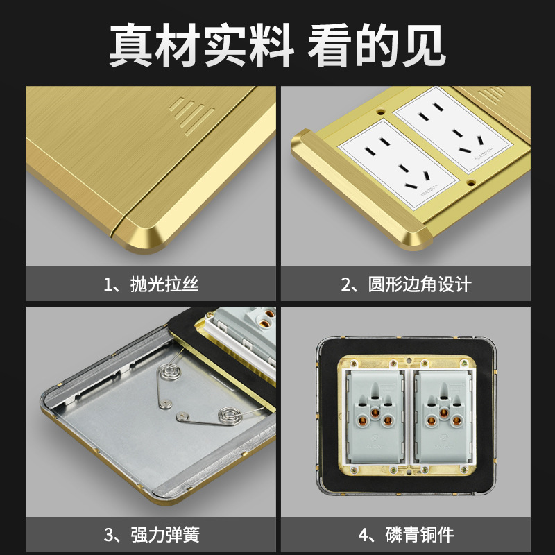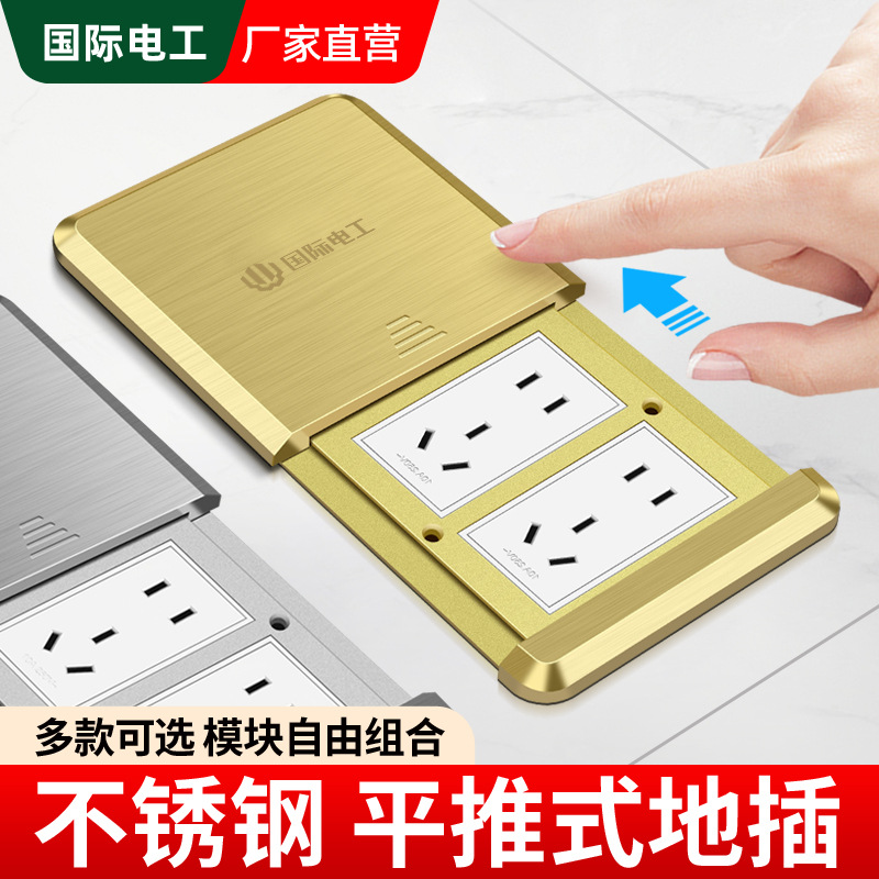 超薄平推式隐藏地插插座防水网络滑盖五孔地面十孔家用地插座