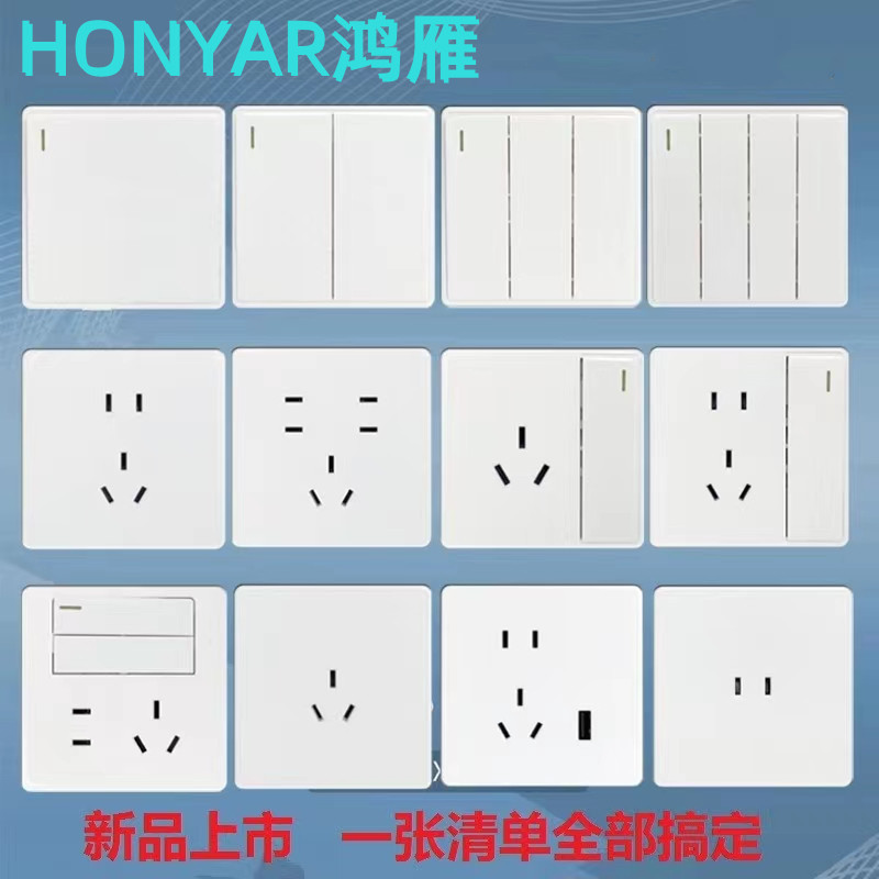 鸿雁X4白色开关插座86型家用五孔带开关USB多孔墙壁空调电脑插座