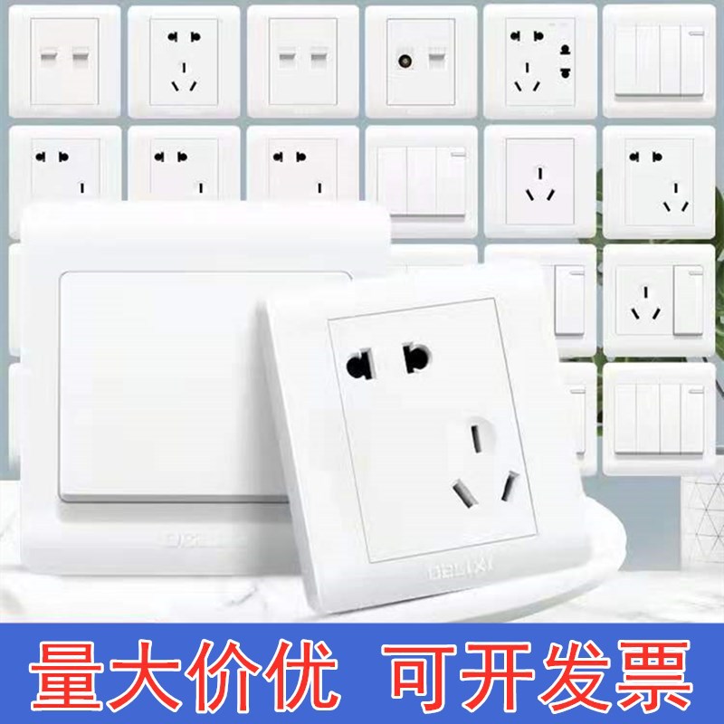 正泰开关插座86型暗装墙壁开关面板一开多控五孔USB电脑电视插座