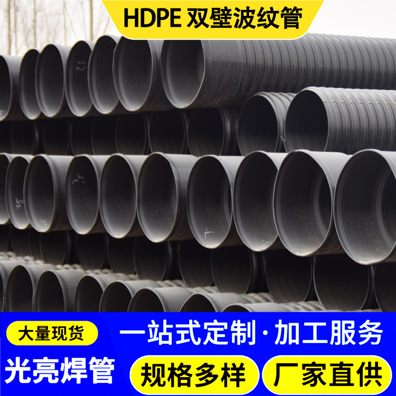 HDPE双壁波纹管市政雨污排水管道农村改造下水管排污管地埋专用管