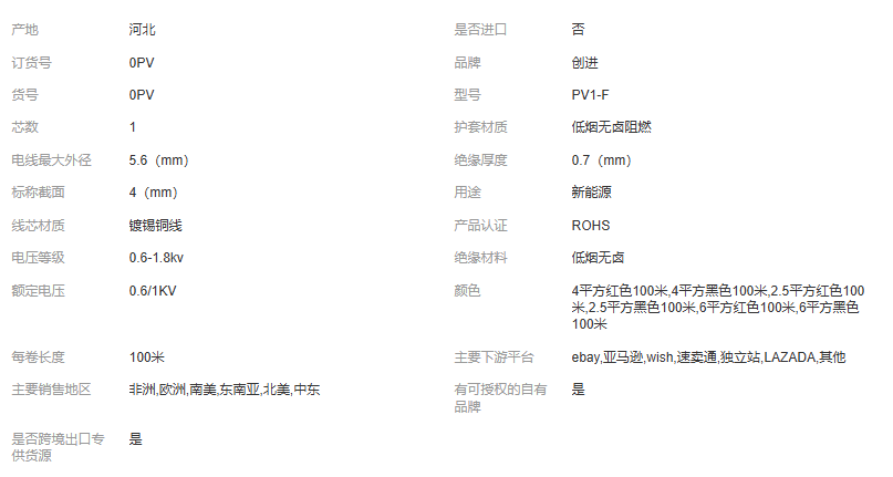 光伏线4平方直流电缆线太阳能电线PV1-F镀锡铜芯新能源电缆高压
