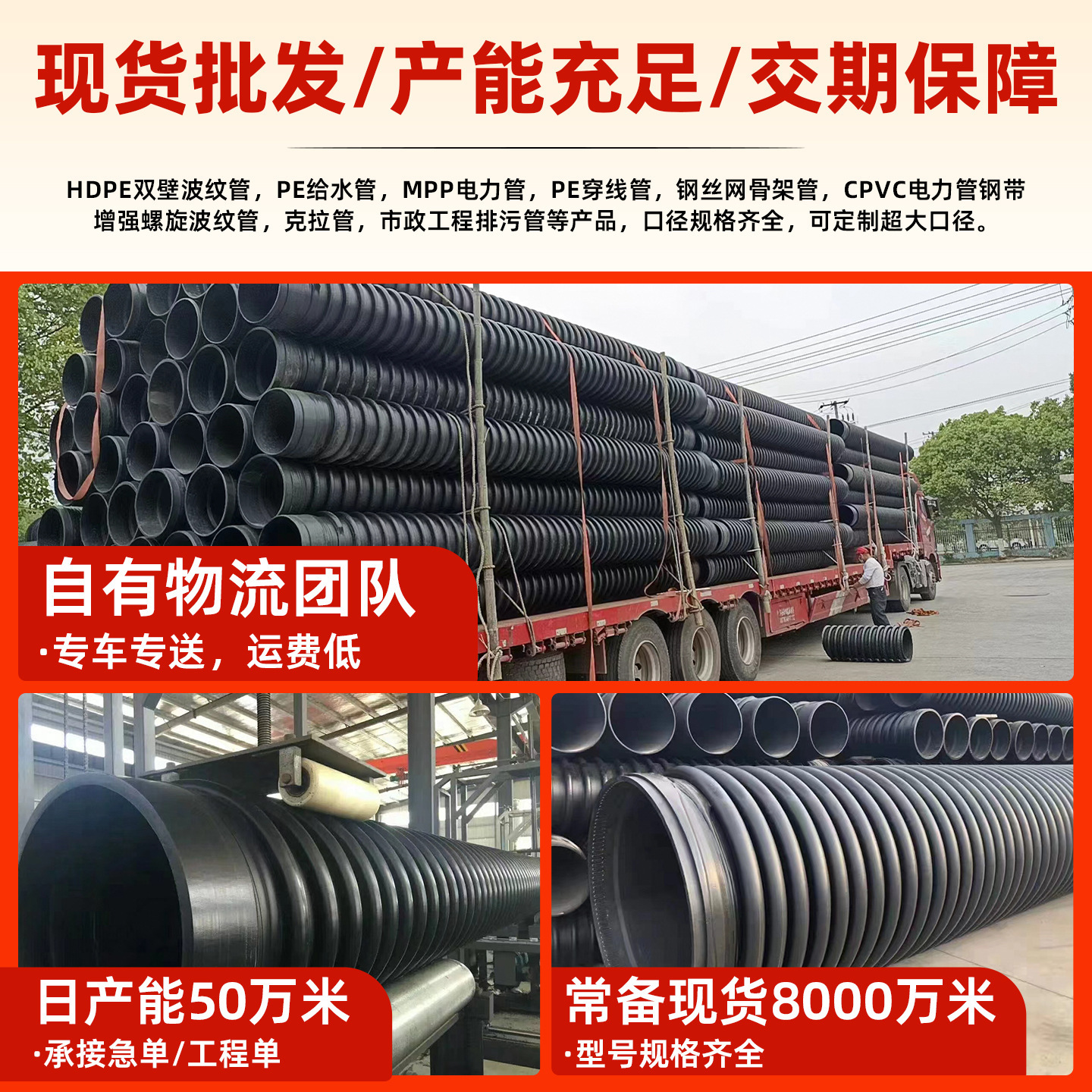 水管; 电管; 排污管; upvc管; 给水管; pvc格栏管; 通信管; pe管; hdpe钢带螺旋管; hdpe双壁波纹管; hdpe管; pvc电力管; mpp电力管; pe水管; 多孔管; 打井管; 自来水管; 耐高温管; pe钢带管; 弱电通信管;
