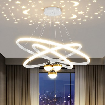餐厅吊灯简约现代星空卧室饭厅灯网红吧台灯投影灯具北欧