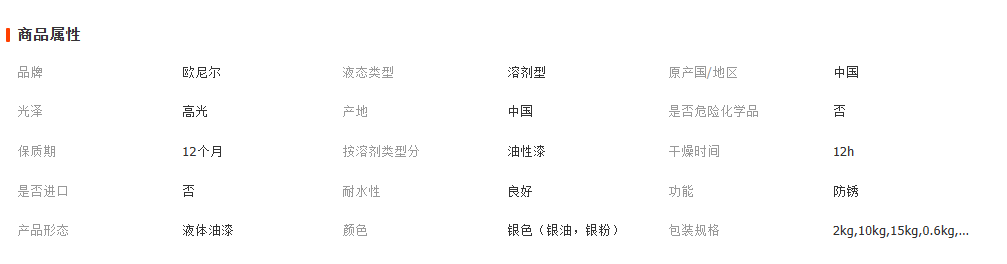 欧尼尔大桶银粉漆防锈银色漆银浆磁漆环保银粉漆油漆亮光