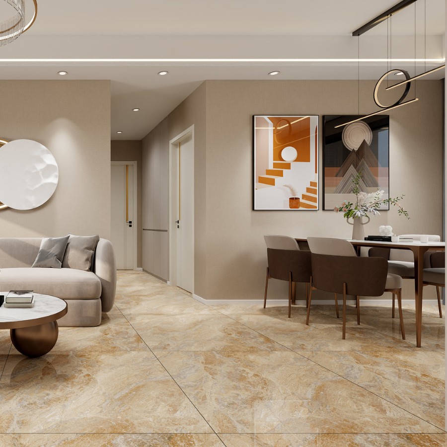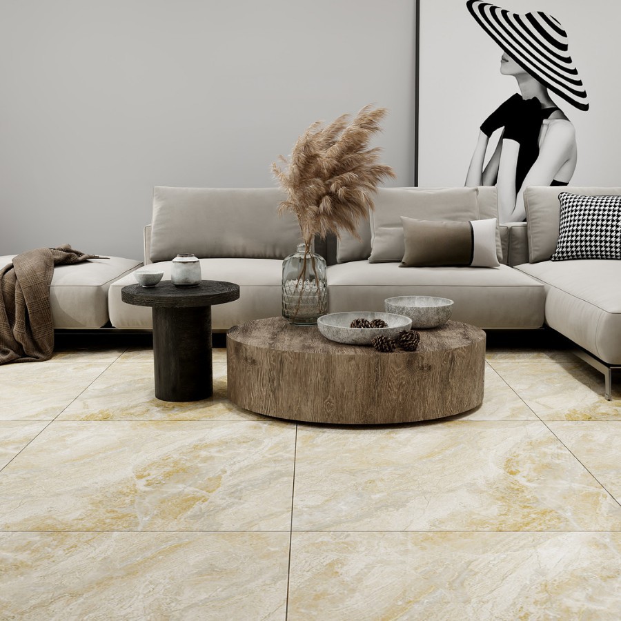 广东佛山通体大理石瓷砖金丝釉800*800客厅地砖黄色花纹防滑地板