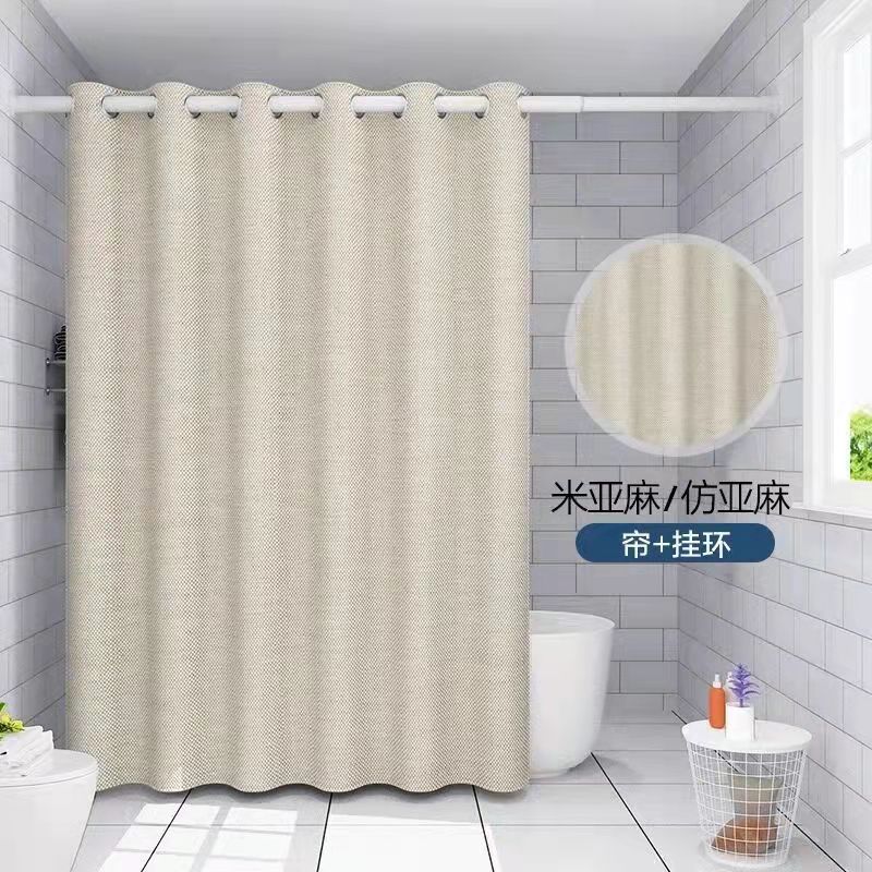 厂家现货罗马孔亚麻加厚防水防霉浴帘隔断帘子窗帘门帘免打孔套装